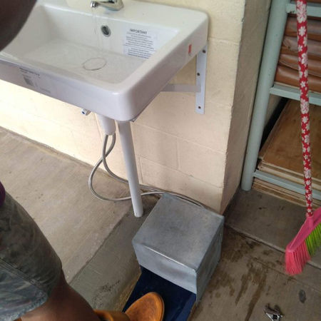 An attachment to your existing sink that transforms it into a foot-operated tap making it handsfree and reducing the amount of hand-to-hand contact and contamination.