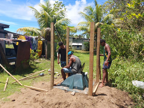 An emergency latrine component system designed for the Fiji and Pacific context.